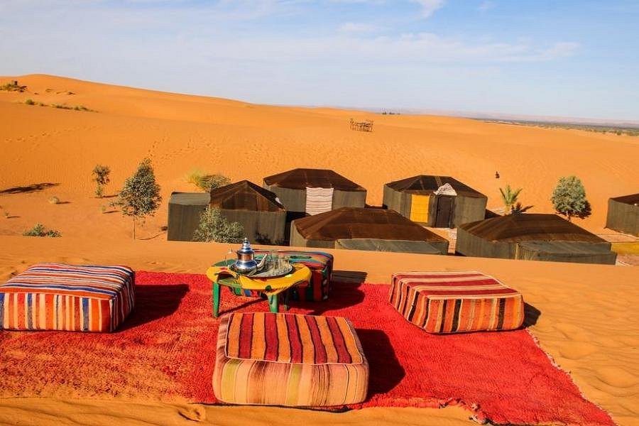 Spend the night in a desert camp, enjoy a traditional Moroccan dinner, and stargaze under the Saharan sky. - Saharan Sunrise